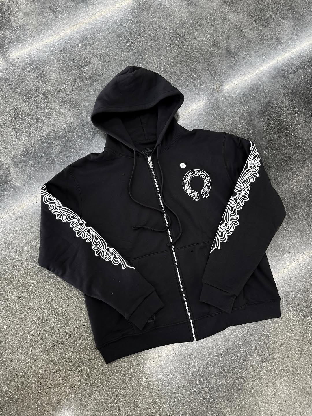 Iconic Chrome Hearts Zip Up Hoodie crafted from heavyweight premium cotton, featuring signature gothic detailing and a timeless street luxury fit.